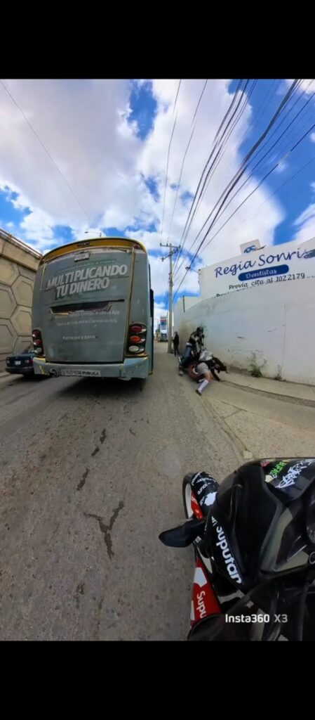 San Luis Potosí, S.L.P., viernes 03 de octubre de 2025.- Un video difundido en la red social TikTok muestra el momento en que una joven estudiante es atropellada por una motocicleta que circulaba en sentido contrario, justo cuando descendía del camión urbano.