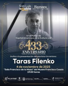 Dará concierto el pianista Taras Filenko por celebración de la fundación de San Luis Potosí noviembre 4, 2025 No hay comentarios Leer Mas >>