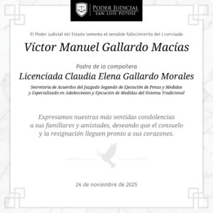 Emite Poder Judicial condolencias por fallecimiento de Víctor Manuel Gallardo Macías noviembre 25, 2025 No hay comentarios Leer Mas >>