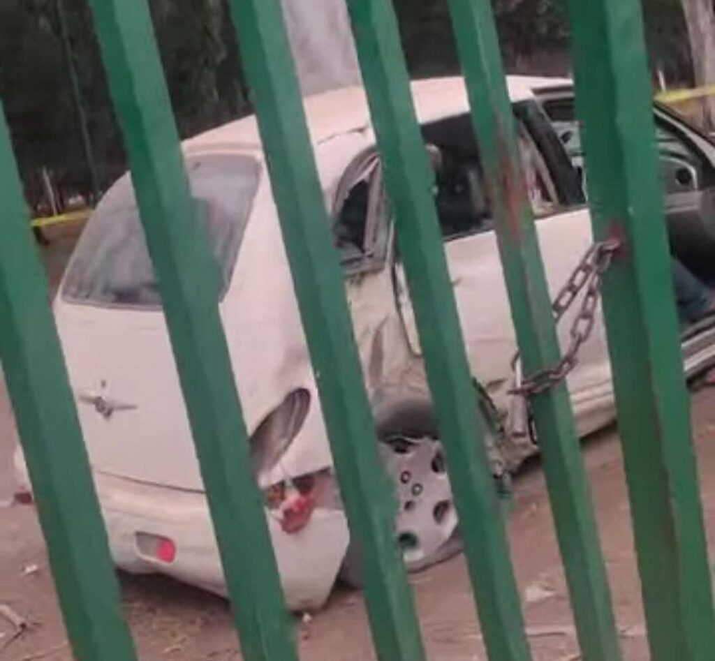 San Luis Potosí, S.L.P., domingo 19 de abril de 2026.– Un accidente registrado en las inmediaciones del Parque Tangamanga II dejó como saldo una persona sin vida y otra gravemente lesionada, luego de que un vehículo PT Cruiser blanco se impactara contra la reja lateral sobre la avenida Fray Diego de la Magdalena e ingresara al área del parque.