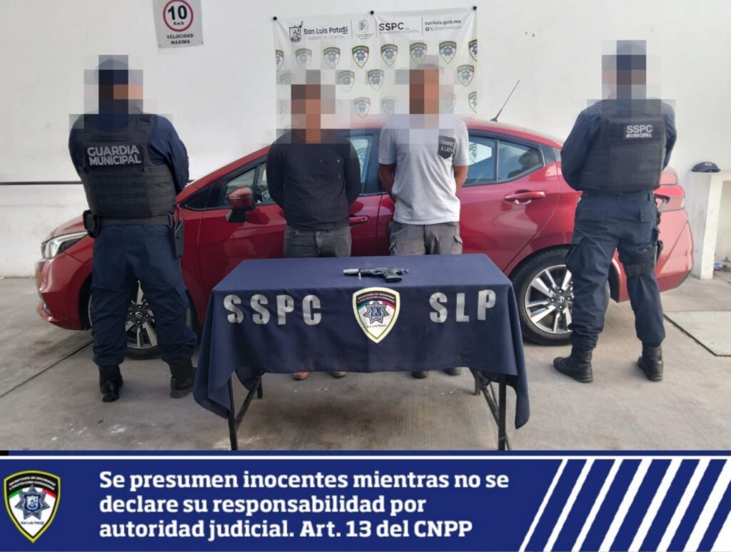 San Luis Potosí, S.L.P., lunes 24 de noviembre de 2025.- Dos hombres fueron puestos a disposición de la Fiscalía General de la República (FGR) luego de ser detenidos por la Policía de la Capital, señalados por presunta portación de un arma de fuego en la colonia Lomas de Satélite. Según el informe policial, ambos individuos mostraron una actitud evasiva cuando los agentes se acercaron, intentando abordar un vehículo para evitar su identificación.