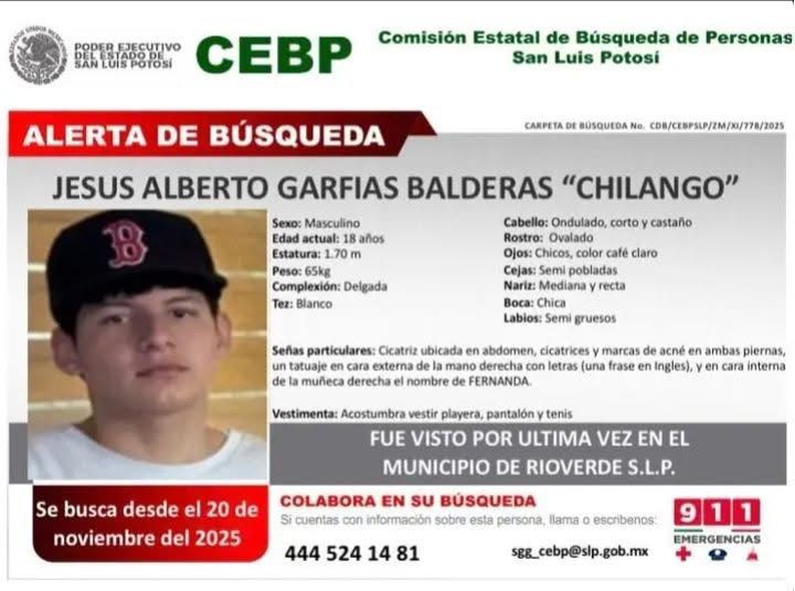 De acuerdo con la información, el joven desapareció tras haber sido interceptado por sujetos armados en las inmediaciones del centro de Rioverde, situación que fue reportada a las autoridades, lo que dio inicio a las labores de búsqueda y activación de los protocolos correspondientes.