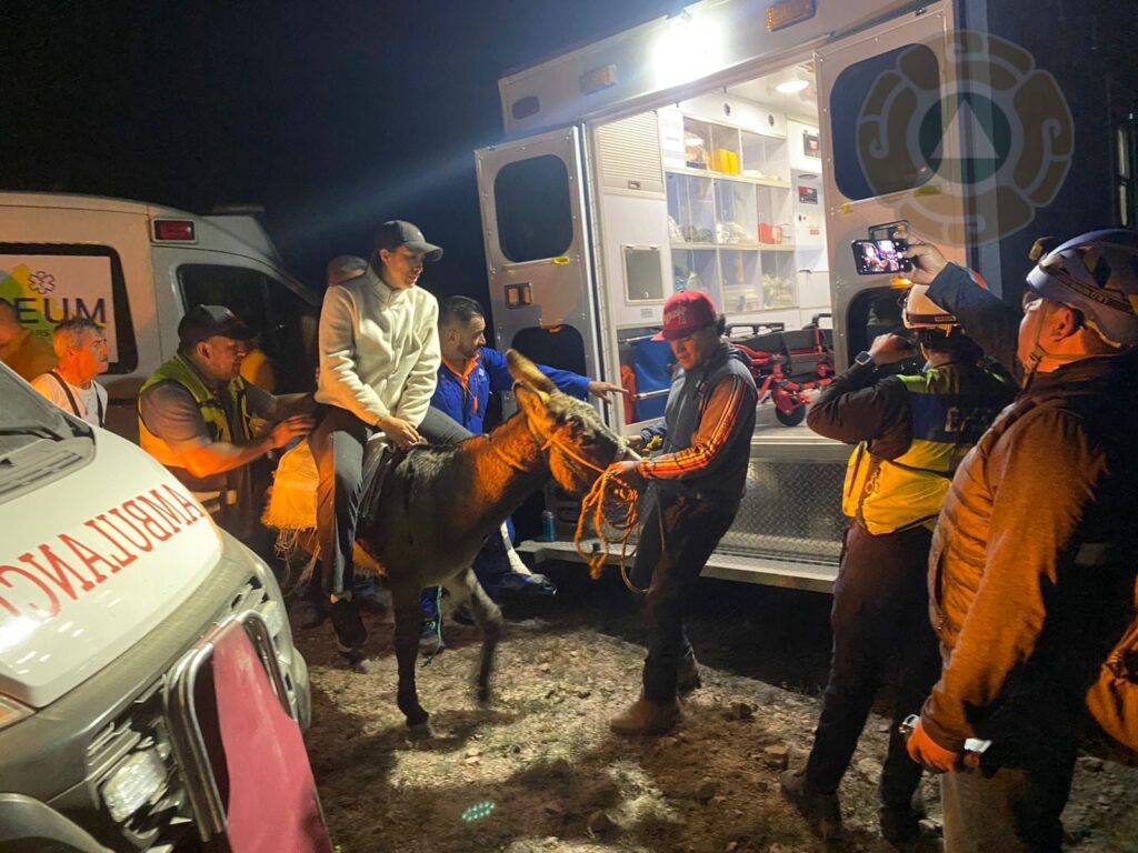 La mujer, de 39 años, se encontraba realizando una excursión en compañía de dos senderistas más, quienes también requirieron valoración médica. Tras recibir el reporte, personal municipal se trasladó al sitio y, en coordinación con Protección Civil Estatal, Protección Civil de Villa de Arriaga, el Centro Regulador de Urgencias Médicas (CRUM) y equipos de paramédicos, se puso en marcha un operativo conjunto de búsqueda y rescate.