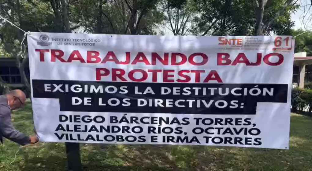 San Luis Potosí, S.L.P., miércoles 08 de octubre de 2025.- Ante las constantes violaciones de sus derechos como trabajadores y ante la falta de respuesta por parte de las autoridades competentes, trabajadores del Instituto Tecnológico de San Luis Potosí continúa trabajando bajo protesta por quinta semana consecutiva, situación que pone en riesgo la estabilidad y la educación de cientos de jóvenes que se ven expuestos por este suceso.