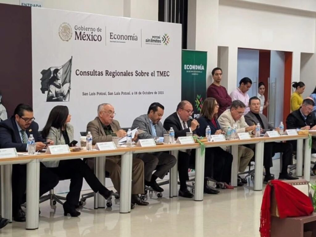 San Luis Potosí, S.L.P., miércoles 08 de octubre de 2025.– San Luis Potosí es sede este día del foro de consulta pública sobre la revisión del Tratado entre México, Estados Unidos y Canadá (T-MEC), con la participación de representantes del sector empresarial, obrero y autoridades federales y estatales.