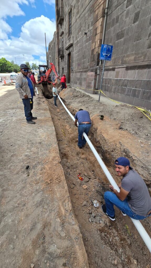 San Luis Potosí, S.L.P., viernes 19 de septiembre de 2025.- INTERAPAS lleva a cabo trabajos de rehabilitación en la Avenida Universidad, a un costado del Templo de San José y frente a la Alameda, con el objetivo de mejorar la infraestructura hidráulica y sanitaria de la ciudad.
