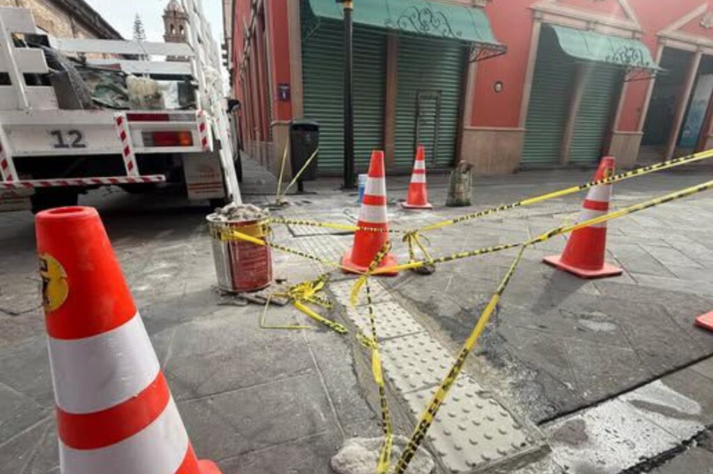 San Luis Potosí, S.L.P., miércoles 11 de febrero de 2026. – El titular de la Dirección de Obras del Ayuntamiento de San Luis Potosí, Eustorgio Chávez Garza, dio a conocer que, como resultado de la operación e instalación de comerciantes ambulantes en diversos puntos del Centro Histórico, además de la presencia de vehículos pesados, se han detectado daños importantes en la guía podotáctil que se tiene en este sector, por lo que se han desplegado varias acciones para repararla y mantenerla en las mejores condiciones posibles.