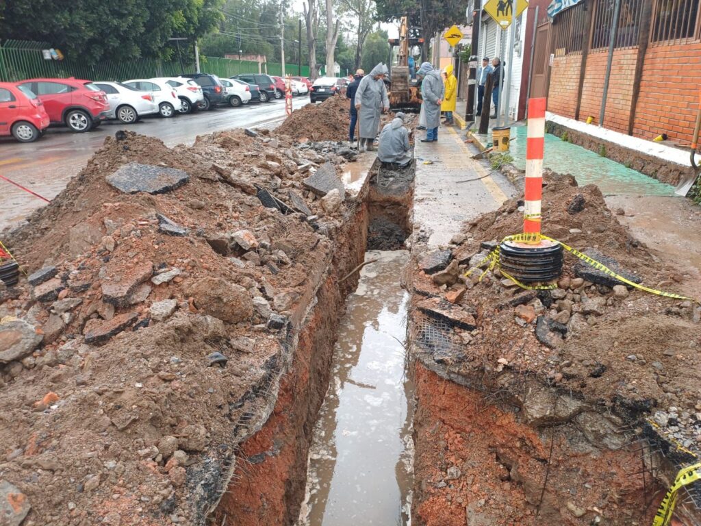 Durante la sustitución de 76 metros de drenaje, personal de la Dirección de Operación y Mantenimiento detectó un taponamiento en la red de agua potable que afectaba el abasto en varios domicilios. Tras las labores de revisión y sondeo, se identificó que la línea presentaba obstrucciones por raíces y acumulación de lodo.