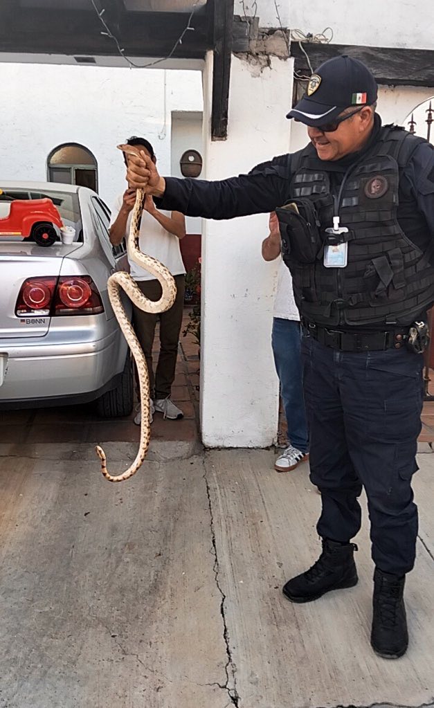 De acuerdo con el propietario del inmueble, el reptil fue encontrado en una maceta, por lo que solicitó apoyo para evitar riesgos. Los oficiales realizaron maniobras para asegurar al animal sin poner en peligro a los habitantes ni a la propia especie.