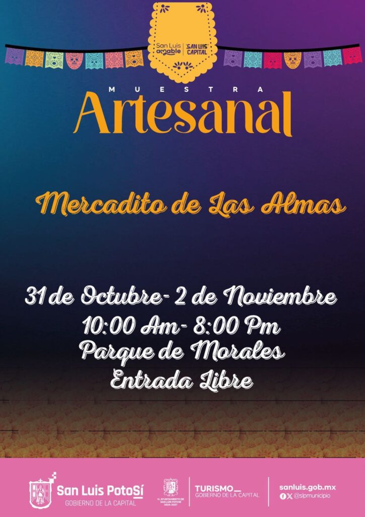 El Mercadito de las Almas estará abierto de 10:00 a 20:00 horas con entrada libre, ofreciendo una oportunidad para convivir con la cultura local y apoyar directamente a los productores potosinos.