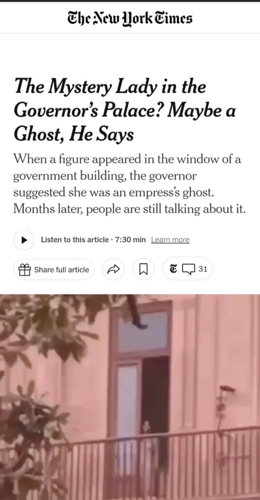 San Luis Potosí, SLP., 1 de noviembre de 2025.– El reconocido diario internacional The New York Times publicó este viernes una nota en la que retomó el peculiar caso de la mujer que fue captada en las ventanas del Palacio de Gobierno de San Luis Potosí, un hecho que generó controversia y diversas interpretaciones en redes sociales y medios locales.
