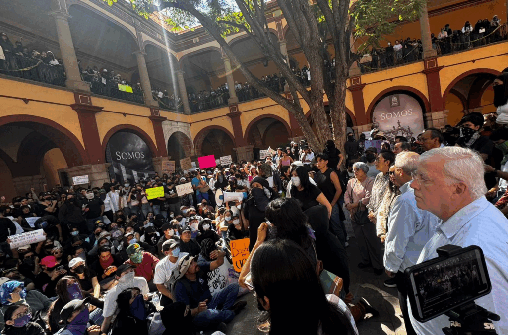 En el patio del Edificio Central, una comitiva de funcionarios universitarios recibió a los jóvenes e intentó entablar el diálogo; sin embargo, ante la ausencia del rector Alejandro Zermeño Guerra, los estudiantes decidieron abrir un foro para exponer sus demandas y reiterar que no se retirarán hasta que sean atendidos por parte de Rectoría.